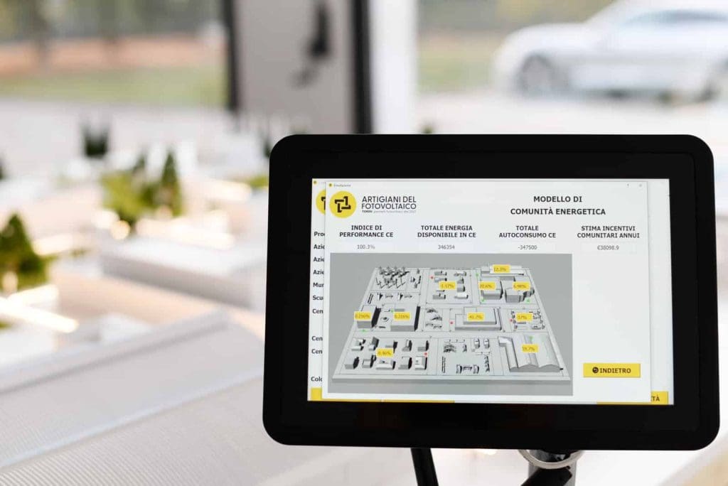 Il plastico interattivo proposto per la prima volta nel 2022 a Futura Expo integra un software che è la “semplificazione ad uso utente” del modello di CER Torri Solare, che si basa sul principio di performance e del suo mantenimento.