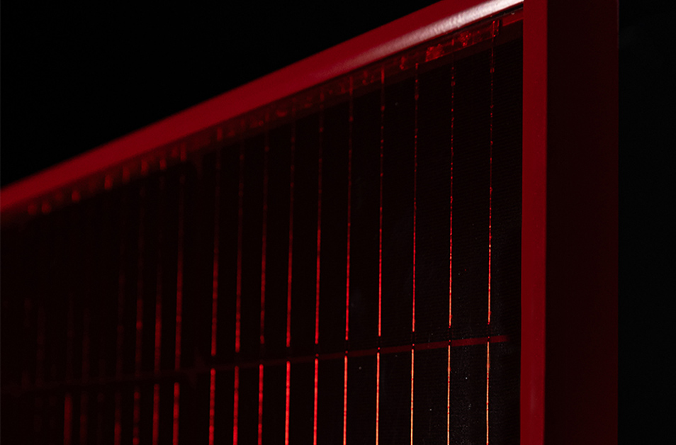 The aesthetic finish is codified by the RAL 3031 nomenclature, and the automatic deposition process combines it with the technique to create a colored photovoltaic panel that maintains its efficiency over time.
